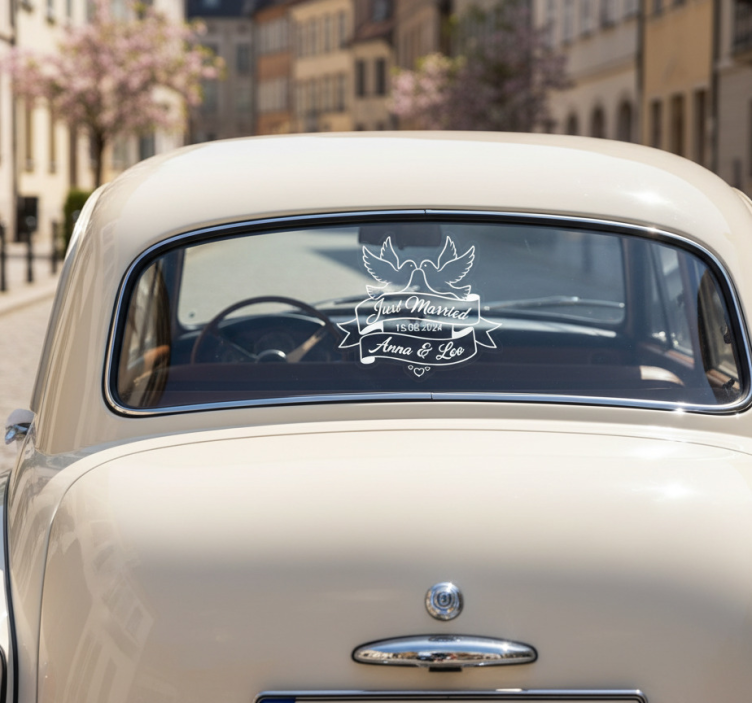 - Car sticker just married love doves design