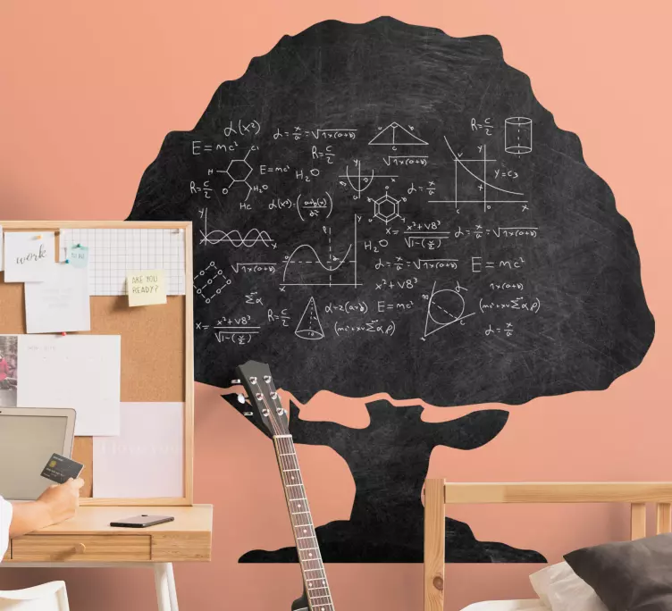 Reference: A48895A striking silhouette of a tree features scientific equations and diagrams integrated into its design, symbolizing the fusion of nature and knowledge. This design embodies a creative study space that inspires learning and curiosity, making it perfect for educational environments.