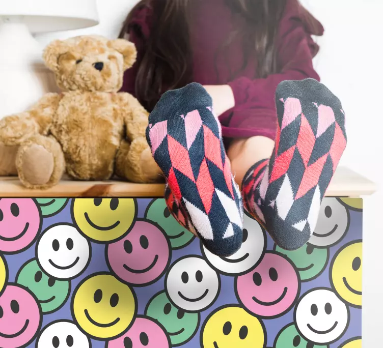 Transform your space with our Colorful smile patterns wall sticker, featuring a delightful design that incorporates playful smiley faces and vibrant pastel colors. This happy and fun wall decal is perfect for adding a touch of personality to any furniture or wall, creating an inviting atmosphere that inspires joy and creativity!