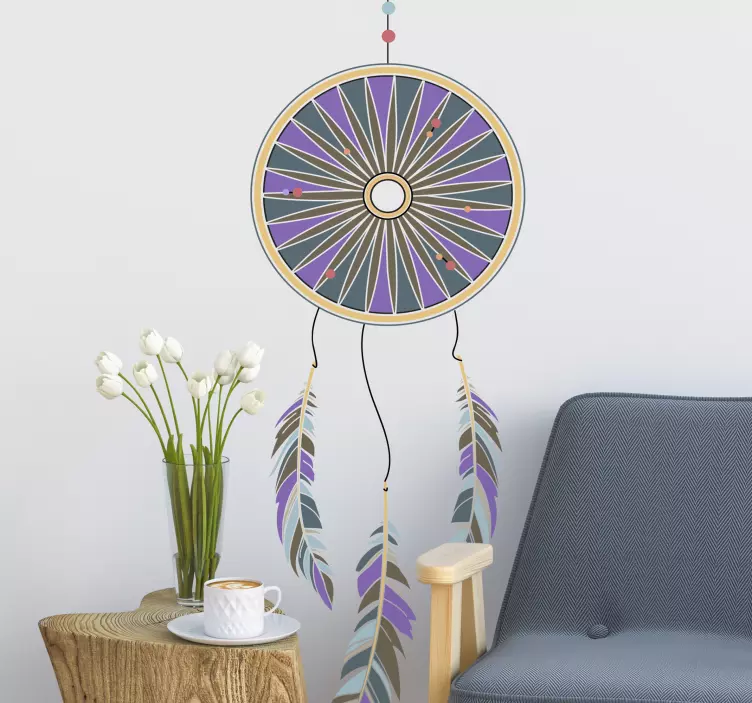 Transform your space with our stunning Dream catcher decoration wall sticker. This beautifully crafted design features a mesmerizing dreamcatcher illustration adorned with purple hues, colorful feathers, and geometric patterns that evoke a bohemian vibe. Perfect for adding a touch of whimsical charm to any room, this decorative piece is sure to inspire sweet dreams and creativity!