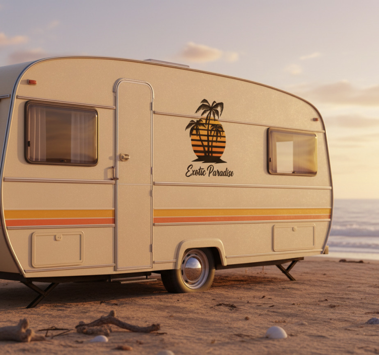 Exotic paradise sunset campervan decal