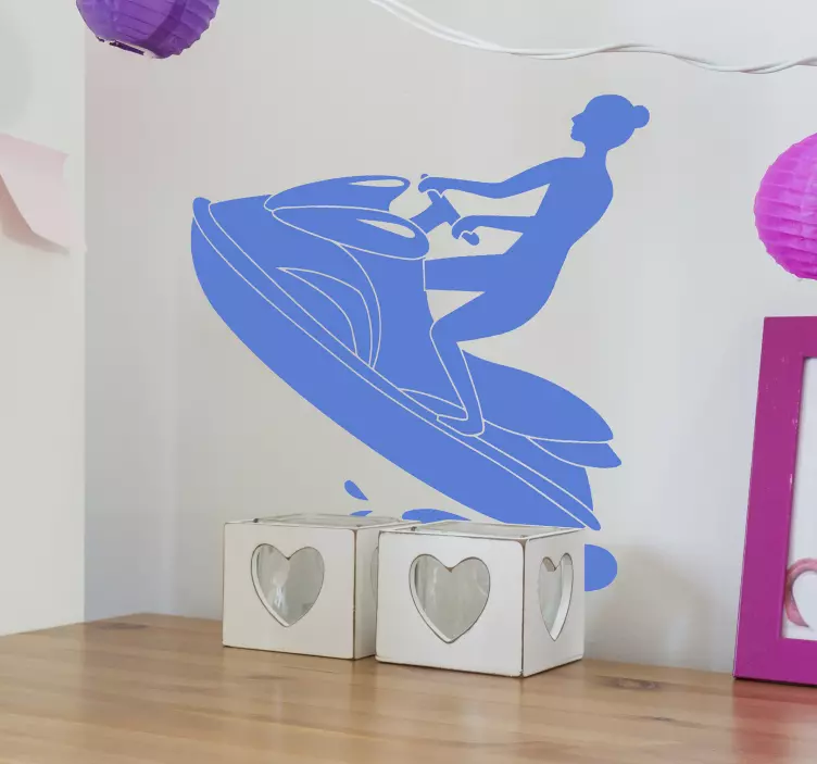 Applying the Extreme sports sticker woman riding jet ski extreme sports sticker is effortless! Simply clean the surface, peel off the backing, and stick it on any flat surface. Enjoy the stunning visual impact it brings to your home or workspace.