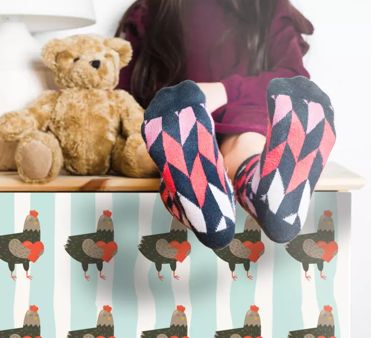 Introducing our Farm animal wall sticker charming chicken design, a delightful addition to your decor! This vibrant sticker features an adorable rooster and charming chickens surrounded by playful hearts and stripes, creating a colorful pattern that embodies the spirit of the farm. The cute design adds a cheerful touch to any space, making it perfect for animal lovers and those who appreciate whimsical home furnishings.