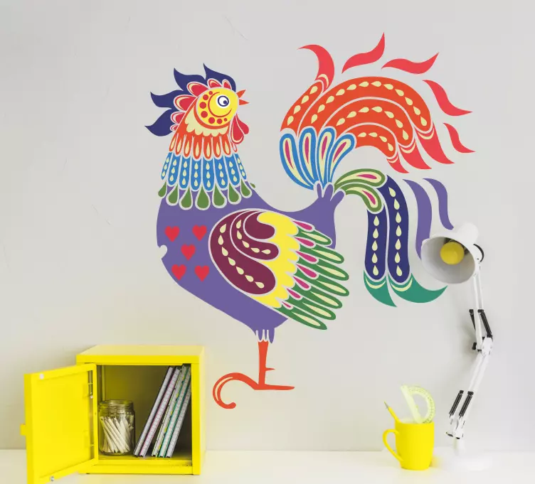 Transform your space with our Farm animal wall sticker vivid rooster art, featuring a stunning illustration of a colorful rooster that brings the charm of the farm right into your home! This vibrant design showcases a playful pattern of birds in a spectrum of bright hues, making it a perfect accent for any room, whether it be a nursery, kitchen, or living area.