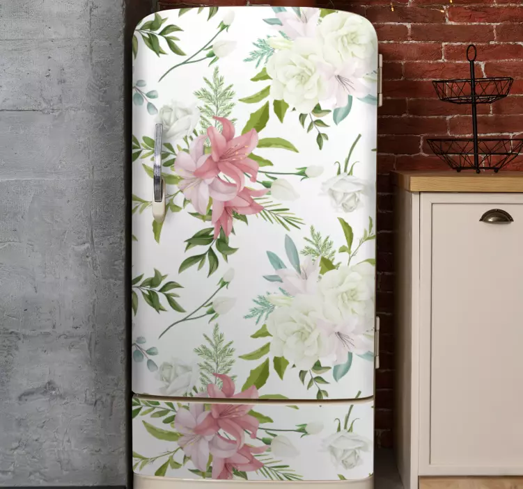Reference: A49541Featuring a vibrant floral pattern, this design enhances the aesthetic of kitchen appliances. The elegant combination of pink and white flowers paired with lush greenery brings a refreshing feel to the space, ideal for adding charm and sophistication to any kitchen environment.
