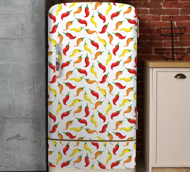 Brighten up your kitchen with our Fridge sticker colorful chili peppers! This stunning design features a vibrant array of colorful chili peppers that create a lively pattern, transforming your fridge into a colorful food-themed masterpiece. Perfect for food lovers and anyone looking to add a splash of joy to their culinary space!