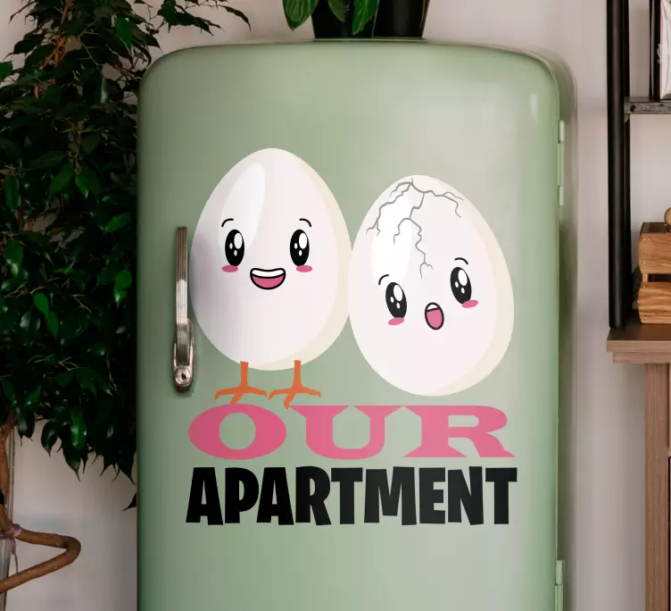 Introducing the Fridge sticker cute egg couple! This delightful design features two adorable cartoon eggs, both laughing and happy, bringing a playful vibe to any apartment. With its charming text and whimsical characters, this fridge sticker is sure to add a touch of humor and joy to your kitchen space!