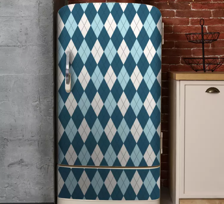 Transform your kitchen with our stunning Fridge sticker diamond pattern wrap. This elegant design showcases a captivating pattern of rhombuses and diamonds in a beautiful blue hue. The geometric shapes come together seamlessly, creating a modern aesthetic that enhances the visual appeal of any fridge. Elevate your space with this stylish addition!