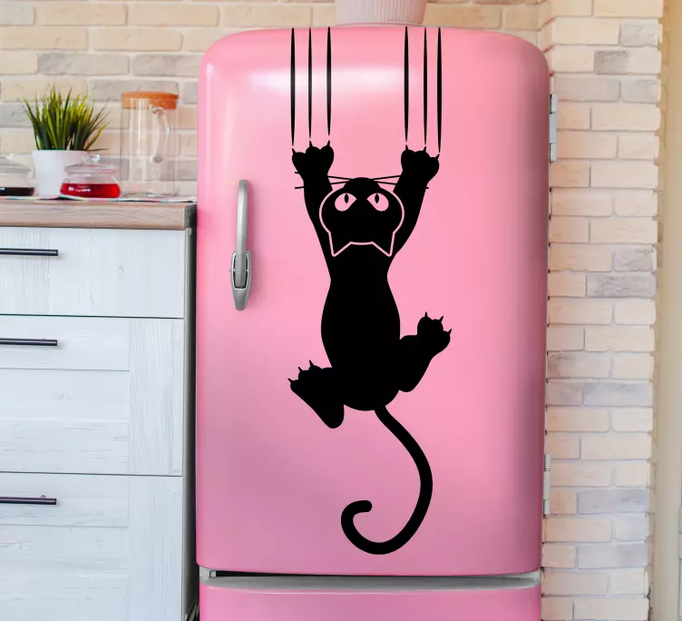 Fridge sticker playful cat climbing design