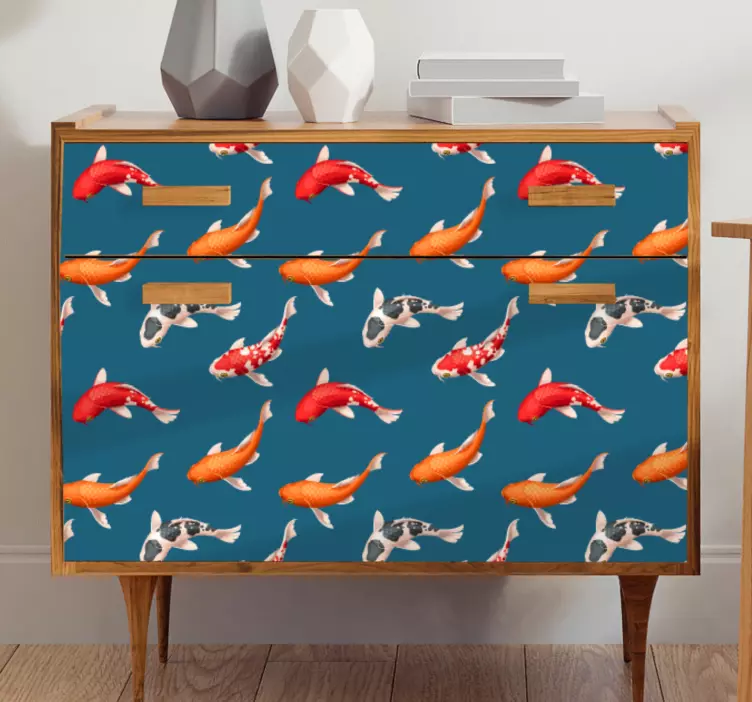Introducing our stunning Furniture sticker colorful koi fish design, an exquisite blend of vibrant colors and intricate patterns that breathe life into any space! This design features beautiful koi fishes that swim gracefully through a backdrop of nature, creating a captivating atmosphere in your home. With its colorful palette, this furniture sticker seamlessly transforms your furniture into a vibrant piece of art, making it a perfect choice for those who appreciate the beauty of nature.