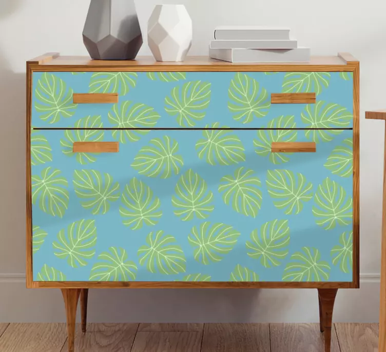 Transform your living space with our stunning Furniture sticker leafy pattern design. This exquisite design features a harmonious blend of blue and green leaves, creating a tropical vibe that brings the essence of nature indoors. The intricate patterns and decorative elements of this furniture sticker not only enhance your décor but also evoke a sense of tranquility and freshness.