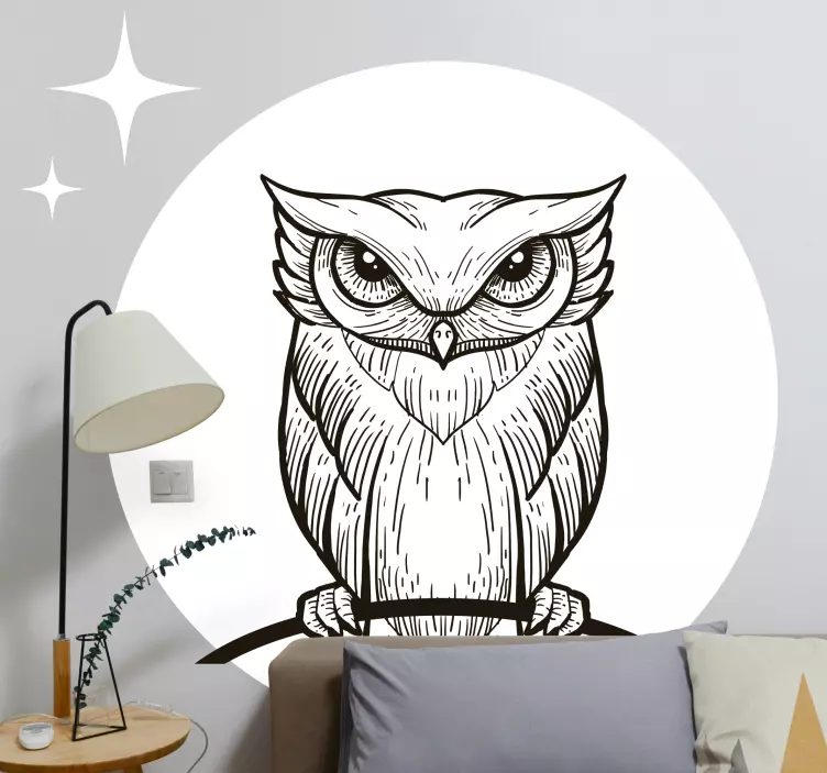 Transform your space with our stunning Headboard wall sticker intricate wise owl. This captivating design features a beautifully detailed owl surrounded by a circular arrangement of stars, creating a harmonious blend of nature and illustration in striking black and white. The intricate details of the owl and the surrounding celestial elements offer a unique visual experience that elevates any room's atmosphere!