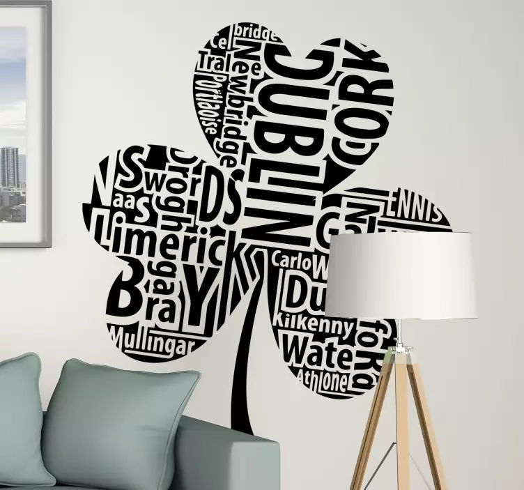 Add this amazing wall decal to your cart and purchase it online with our secured payment. Get your hands on this beautiful Irish Shamrock with Cities Wall Decal today!