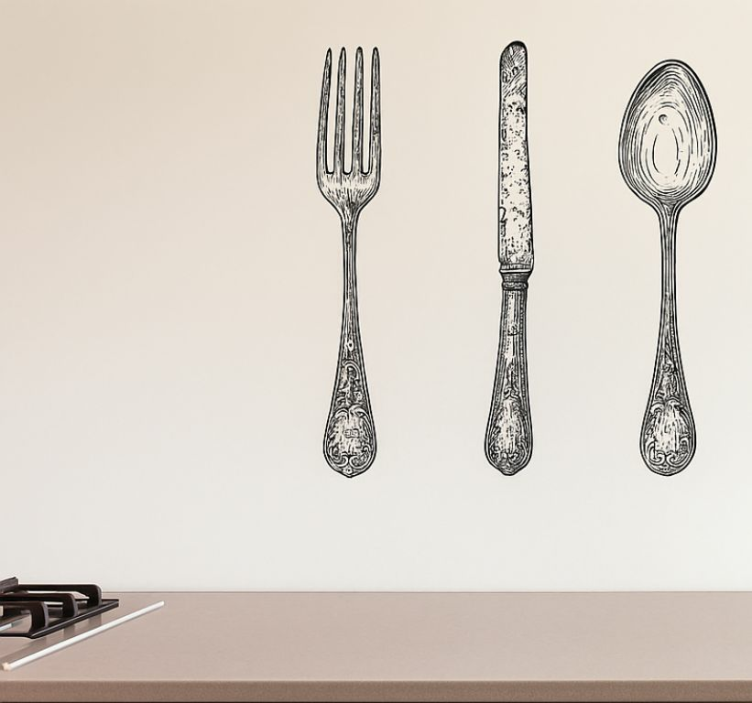 Transform your kitchen into a culinary haven with our Kitchen wall sticker grey cutlery design kitchen wall sticker. This captivating piece not only enhances the aesthetic of your space but also inspires creativity in your cooking endeavors. Imagine the joy of preparing meals surrounded by art that celebrates the heart of your home!