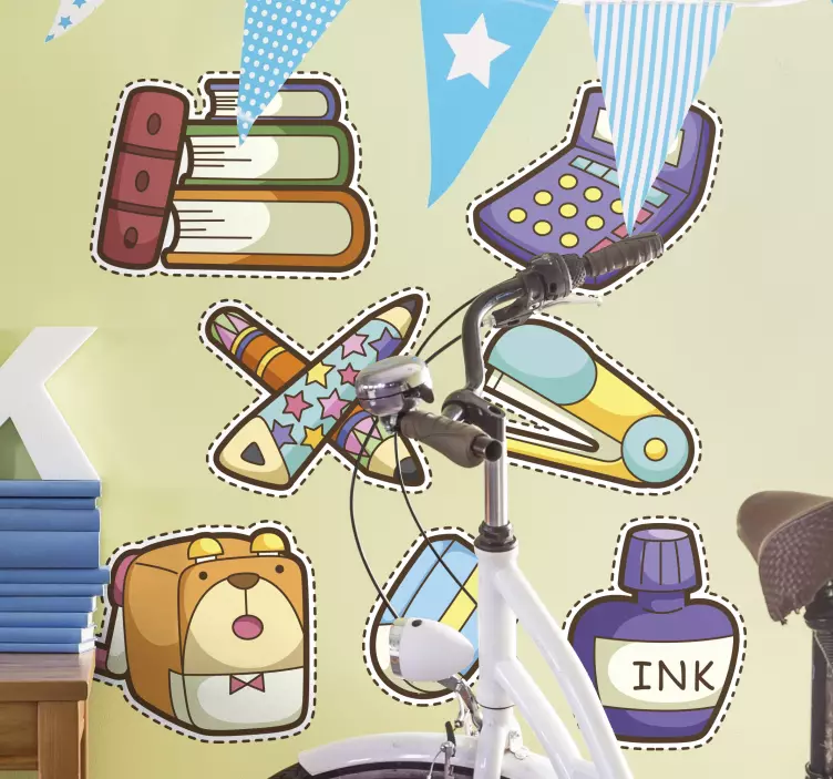 Reference: A51335A vibrant collection of stationery items featuring books, crayons, and a calculator. This playful assortment captures the essence of creativity and learning, making it perfect for a child's space. The design encourages imagination and adds a fun element to any area dedicated to study or play.
