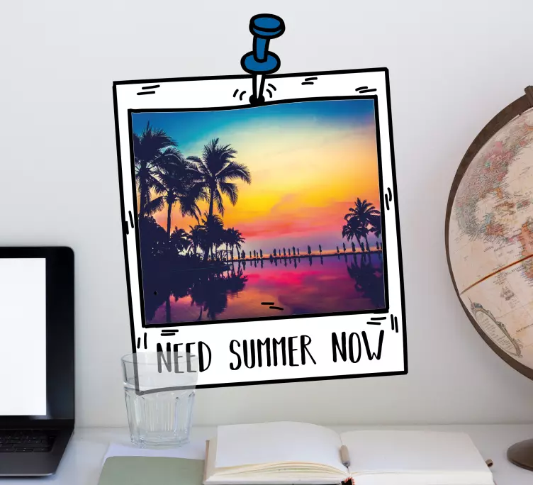 Transform your space with our stunning Nature wall sticker summer landscape frame, featuring a vibrant polaroid design that captures the essence of summer. Picture a serene beach at sunset, framed by lush palm trees, all while evoking those delightful summer vibes. This beautiful photograph encapsulates the joy of now, inviting you to bask in its warmth.