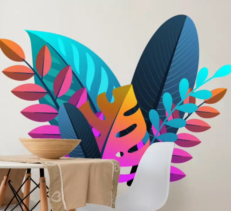 Transform your space with our Nature wall sticker vibrant leaf collection, a stunning display of colorful tropical leaves and foliage that invigorate any environment. This botanical design features vibrant hues and intricate details, bringing the essence of nature indoors. Perfect for those who love to decorate with a touch of elegance and liveliness!