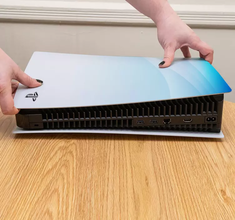 Applying the Ps5 skin blue gradient cover PS5 skin is a breeze! Simply peel back the adhesive backing and carefully align it with your console for a perfect fit.