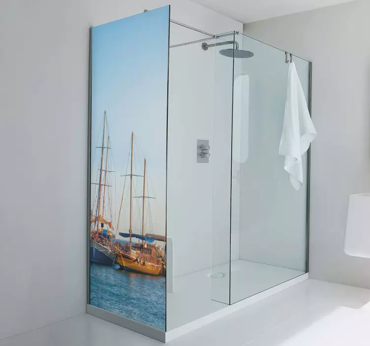 Transform your shower space into a serene maritime escape with our Shower screen sticker sailing boats scene. This beautifully designed sticker features a picturesque view of sailing boats gracefully gliding across the water, set against a charming dock and harbor backdrop. The stunning photography captures the essence of nautical adventures, making it a perfect addition to any outdoor or marine-themed decor. The vibrant colors and intricate details bring a refreshing ambiance that invigorates your daily shower routine!