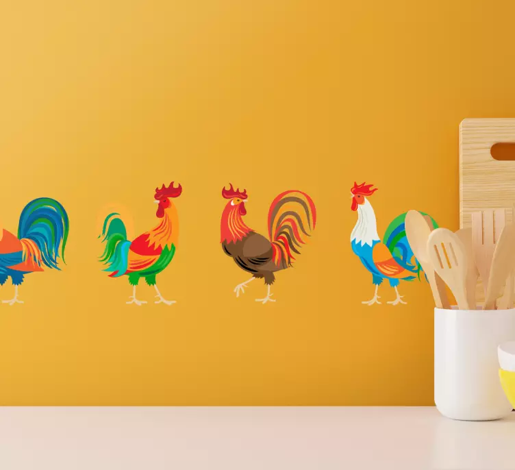 Transform your space with our Wall border sticker colorful rooster display, featuring a vibrant design that showcases charming roosters in a delightful farm setting. This colorful border adds a playful touch to your kitchen or any room, bringing the spirit of country life indoors!