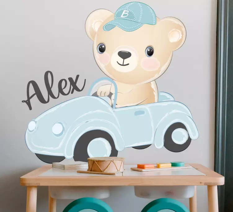 Transform your child's space with our enchanting Wall sticker cute bear driver. This delightful design features an adorable teddy bear driving a colorful car, creating a whimsical atmosphere that's perfect for any child's room. Personalizable with their name, this playful cartoon design brings joy and creativity to your child's environment. The cute bear in a vehicle adds a touch of magic that sparks imagination and smiles!