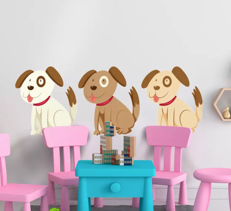 Wall sticker playful puppy trio