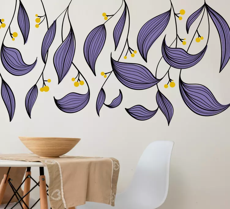 Transform your space with our stunning Wall sticker purple leaf design, featuring beautifully hanging leaves and vibrant flowers that celebrate the essence of nature. This colorful and decorative piece brings an elegant touch to any room, effortlessly enhancing your decor with its floral charm.