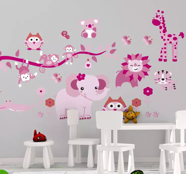 Transform your child's room into a whimsical jungle with our Wall stickers for kid cute animal collection. This delightful set features colorful illustrations of playful animals in a vibrant pink hue, bringing the wild spirit of the jungle to life in a cartoonish style. Perfect for young imaginations, these decorative stickers will undoubtedly create a joyful atmosphere that sparks creativity and fun!