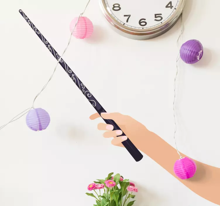 Reference: A47302A whimsical representation of a magic wand held in a hand, adorned with intricate patterns. This playful imagery captures the essence of imagination and wonder, perfect for inspiring creativity in children's spaces.