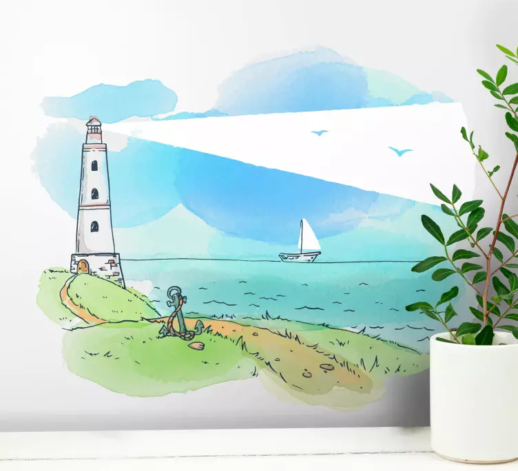 Enhance your nautical-themed decor with this stunning watercolour lighthouse marine wall sticker.