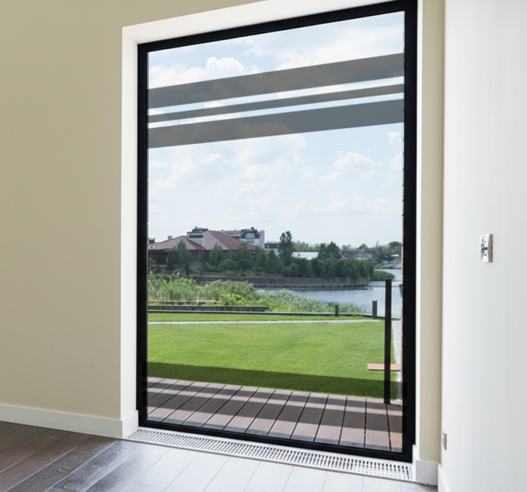 Reference: A53832Enhance your space with our Window sticker dark grey horizontal stripes. This elegant design features sleek horizontal stripes in a sophisticated dark grey tone, perfect for adding a modern touch to your windows or any flat surface. The satin finish ensures that light reflections are minimized, allowing the rich colors to stand out beautifully. Enjoy the visual appeal without glare, and rest assured knowing that this high-quality sticker is not only durable but also easy to maintain!