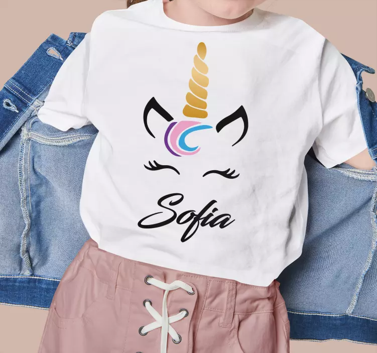 Reference: T5163This charming design features a playful unicorn with a vibrant horn and cute face, combined with a personalized name, making it perfect for little ones. The lively colors and joyful expression enhance its appeal, making it an excellent choice for special occasions.