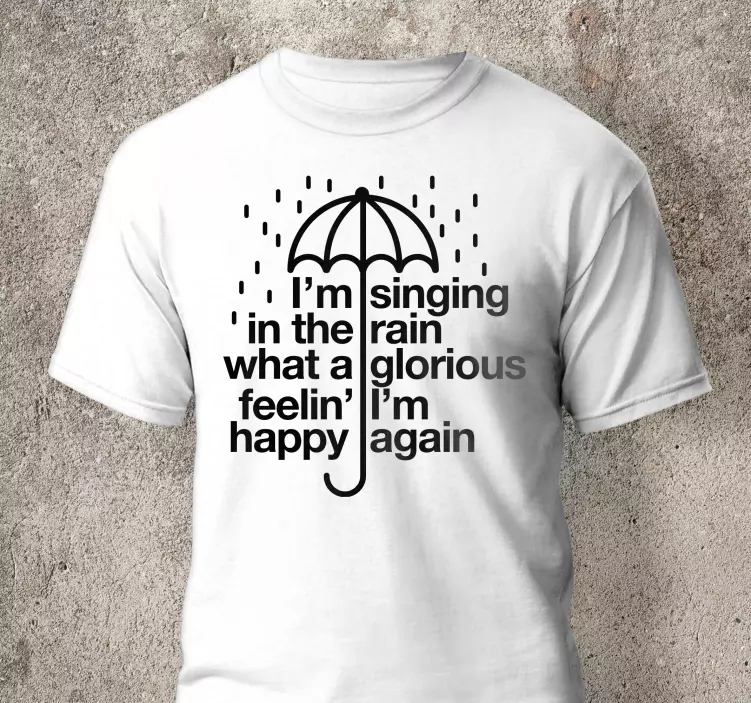 The Happy rainy umbrella quote t-shirt is more than just a piece of clothing; it's a statement of joy and optimism! Wearing this t-shirt will not only brighten your day but also spread happiness to those you encounter. It’s perfect for those who appreciate the beauty in every drop of rain and love to express their happy feelings through fashion. Imagine stepping out in this uniquely designed shirt, receiving smiles and compliments everywhere you go!