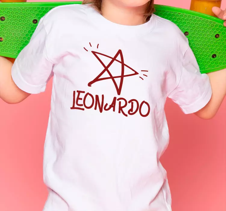 Reference: T5005This vibrant design showcases a playful star and personalized name. Aimed at kids, it combines youthful energy with creativity. Perfect for celebrating individuality, it embodies a fun spirit while accessorizing activities like skateboarding and outdoor play.