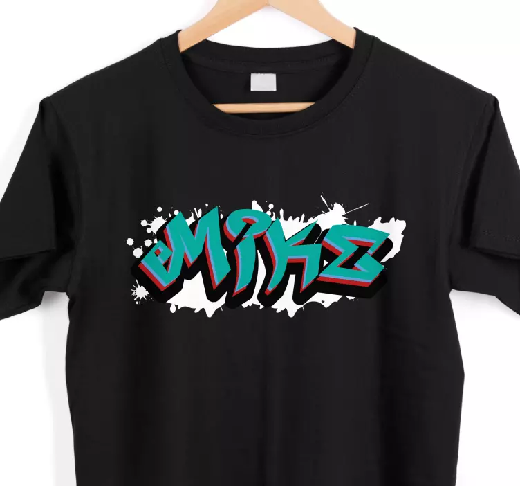 Introducing our stunning T-shirt with name bold name design, a vibrant piece that combines the essence of graffiti, street art, and urban art. This unique design showcases playful graphic typography, perfect for those who want to express their individuality. Printed on durable black fabric, this customizable T-shirt is a canvas for your name, making it an eye-catching addition to any wardrobe. With its rich colors and artistic flair, it’s sure to turn heads!