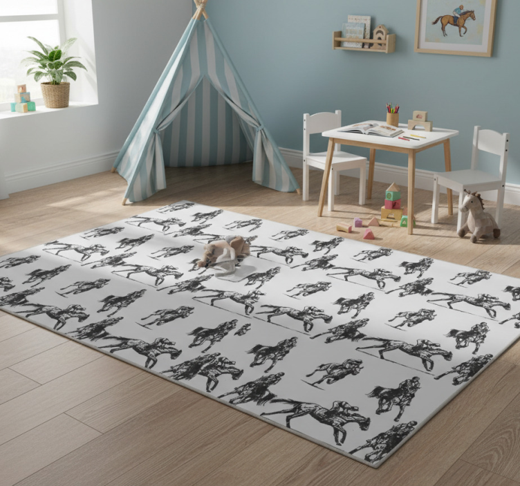 Caring for your Gray western horses animal vinyl rug is a breeze! Simply wipe it down with a damp cloth or use a mild detergent for tougher stains. Its resilient surface ensures that it stays looking fresh and vibrant with minimal effort, allowing you more time to enjoy its beauty.