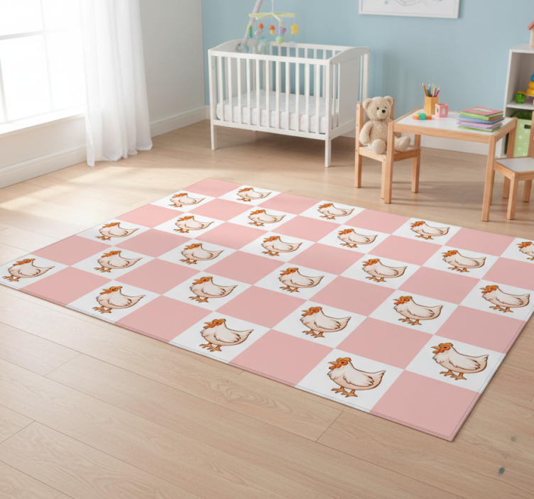 Animal vinyl rug pink rooster pattern squares