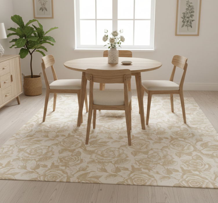 Reference: R21196Transform your dining space with the exquisite Beige vintage roses dining room vinyl rug, a stunning piece that effortlessly blends elegance with charm. Featuring delicate vintage rose patterns set against a soft beige backdrop, this design creates a warm and inviting atmosphere that enhances your dining experience. It is not just visually appealing but also practical, making it an ideal choice for any home.