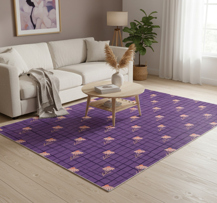 Floral vinyl rug in purple floral design