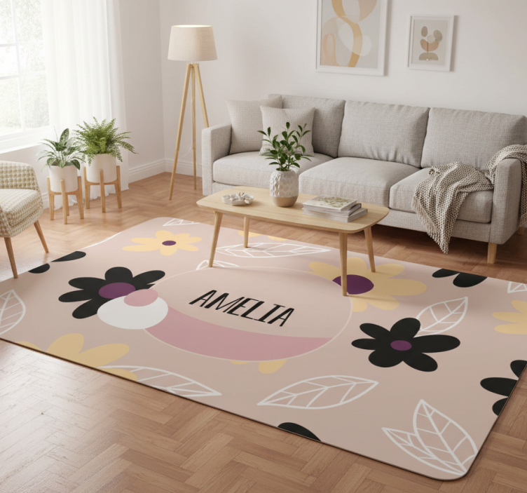 The Floral vinyl rug in vibrant modern flowers on beige floral vinyl rug is an ideal choice for enhancing your decor. Its lively floral pattern instantly uplifts any room, creating a joyful atmosphere that invites comfort and relaxation. The unique design makes it a focal point in your living area, bedroom, or even a cozy reading nook, seamlessly blending with various styles while providing a refreshing pop of color!
