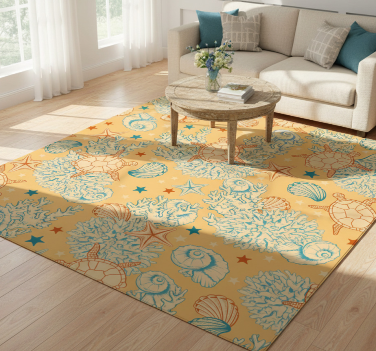 Maintaining the Floral vinyl rug inspired by coral and marine life floral vinyl rug is simple! Just wipe it down with a damp cloth or mop to keep it looking fresh and vibrant. Its durable surface allows for hassle-free cleaning, ensuring that your rug remains a stunning centerpiece in your home.