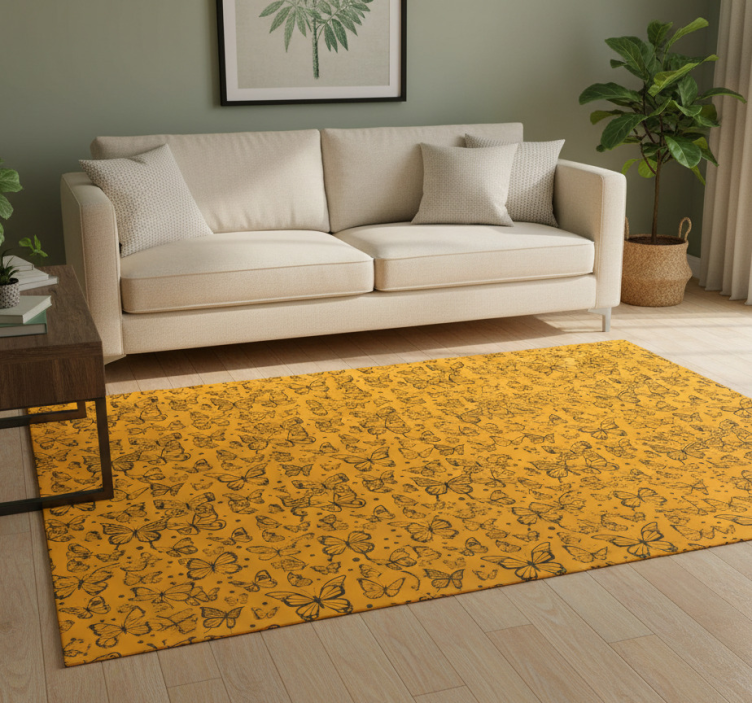 Floral vinyl rug with butterfly plant design