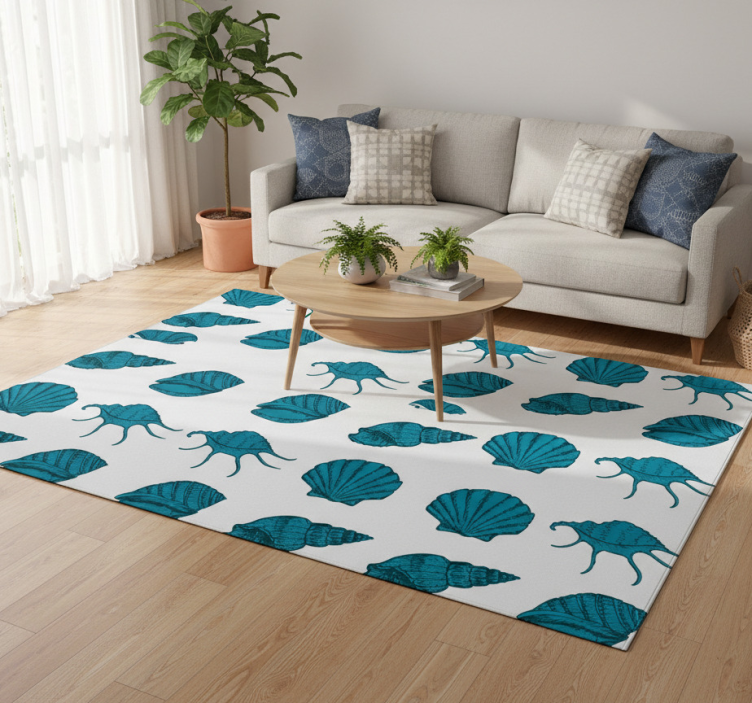 Floral vinyl rug with decorative shell designs