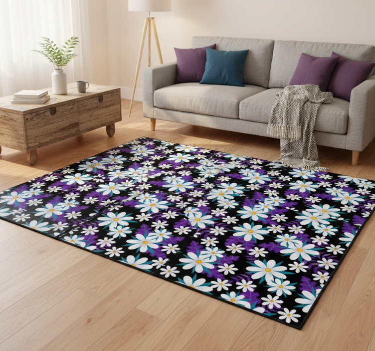 Floral vinyl rug with flowers on a black background