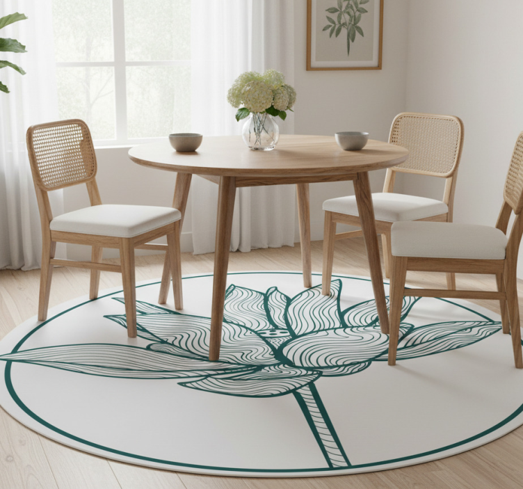 Floral vinyl rug with lotus flower blossom design