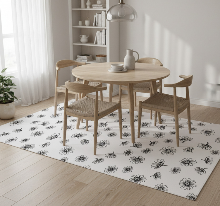 Floral vinyl rug with outlined daisy flowers