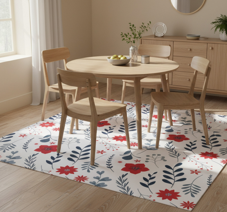 The Floral vinyl rug in white and red floral pattern is perfect for adding a splash of color and style to your home! Imagine transforming your living room or bedroom with this vibrant piece that captures attention and elevates your interior design. It seamlessly blends into various decor styles while providing a cozy atmosphere, making it an ideal choice for those who want their spaces to reflect joy and creativity!