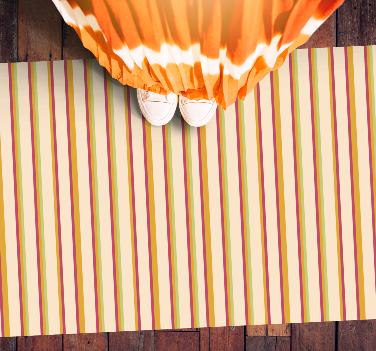 Transform your space with the stunning Stripes vinyl rug multi-striped elegance! This exquisite design features vertical lines in a captivating arrangement of yellow, red, green, and beige stripes that create a vibrant yet harmonious atmosphere. The unique pattern effortlessly elevates any room, making it a must-have for those who appreciate both elegance and style.