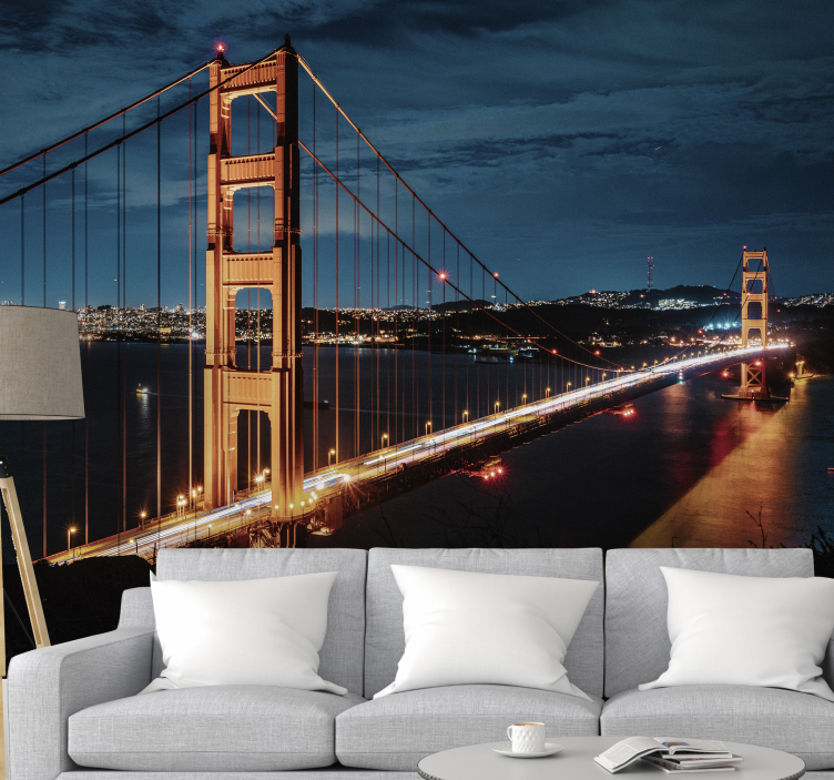 Transform your space with our captivating City wall mural golden gate bridge at night. This stunning design features the iconic Golden Gate Bridge illuminated against a backdrop of a vibrant night scene, showcasing the enchanting city lights that create a mesmerizing atmosphere. The perfect blend of urban elegance and scenic beauty, this mural is sure to elevate any room!