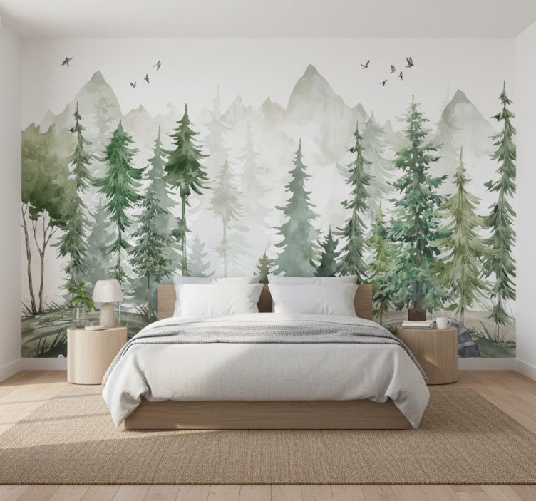 Immerse yourself in the beauty of nature with the Forest wall mural nordic pine minimalist design forest wall mural. This captivating mural not only enhances your interior decor but also inspires a peaceful ambiance, inviting you to escape the hustle and bustle of everyday life. Its minimalist design harmonizes seamlessly with various decor styles, making it a versatile addition to your home. Elevate your living space and let the enchanting forest scene breathe life into your walls!